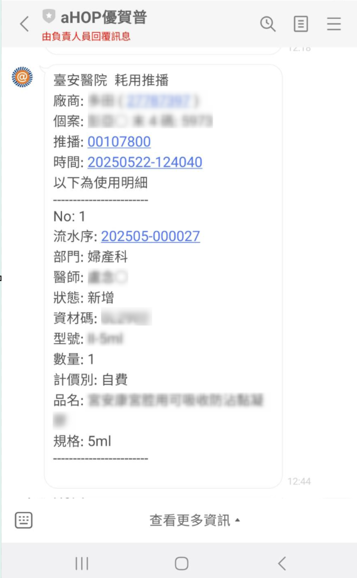 於2025年7月21日上線的優化版進階服務,功能說明如下: 可將指定的院方耗用訊息,發送至個別人員的LINE中(指定的接收人員需先綁定LINE); 可自 ..................