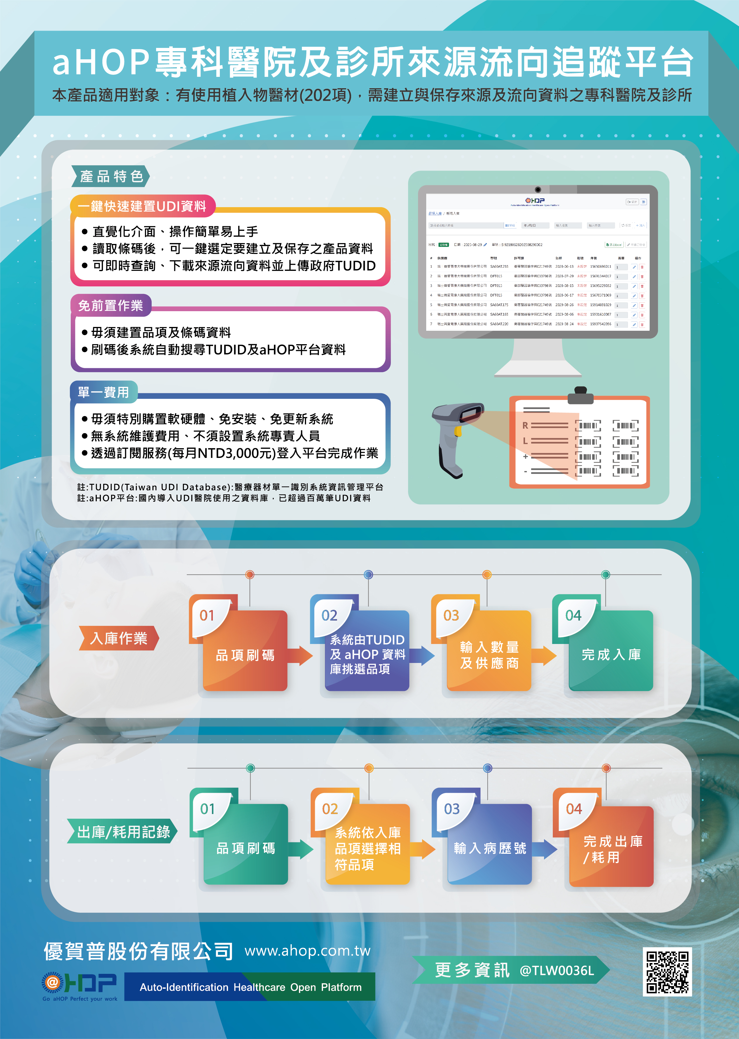 國內醫策會於昨日(112年) 1月12日舉辦「2022年第廿三屆NHQA國家醫療品質獎頒獎典禮」,優賀普股份有限公司以「aHOP智能UDI_讓單支器械管理不再只是追蹤溯源」再度榮獲&n ..................
